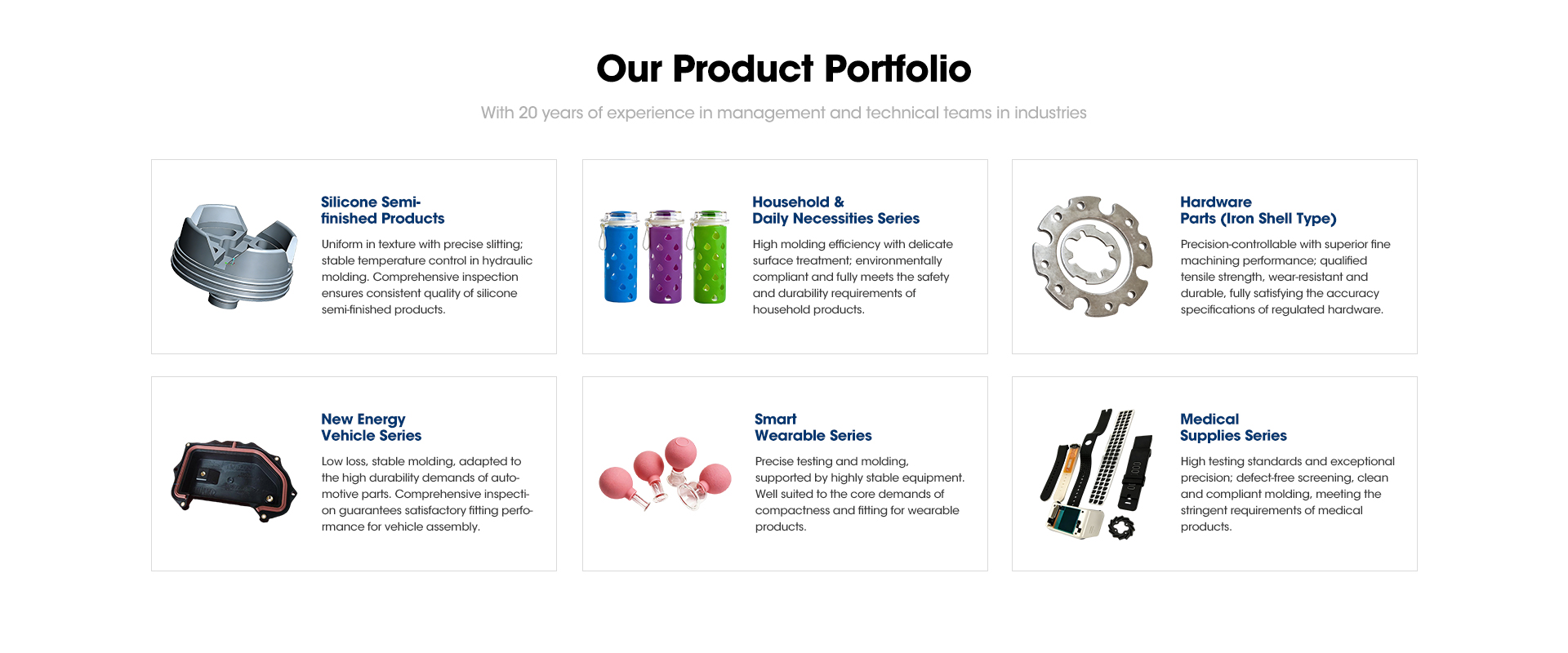 We offer silicone/rubber products, plastic parts, e-cigarette accessories, medical components, etc., and partner with well-known brands like RELX, YOOZ and Amazon.